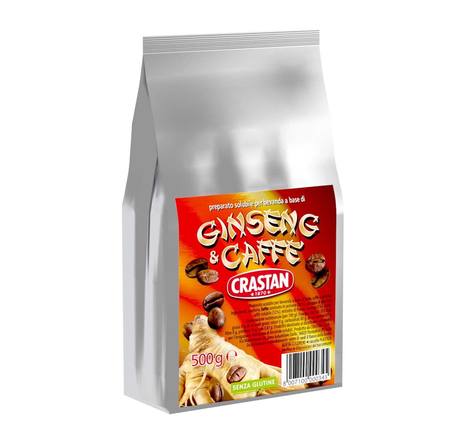 Ginseng e Caffè Solubile per Bar, la carica del caffè si unisce alle proprietà tonificanti e rivitalizzanti del ginseng dando vita ad una piacevolissima e aromatica bevanda dal gusto cremoso e avvolgente.